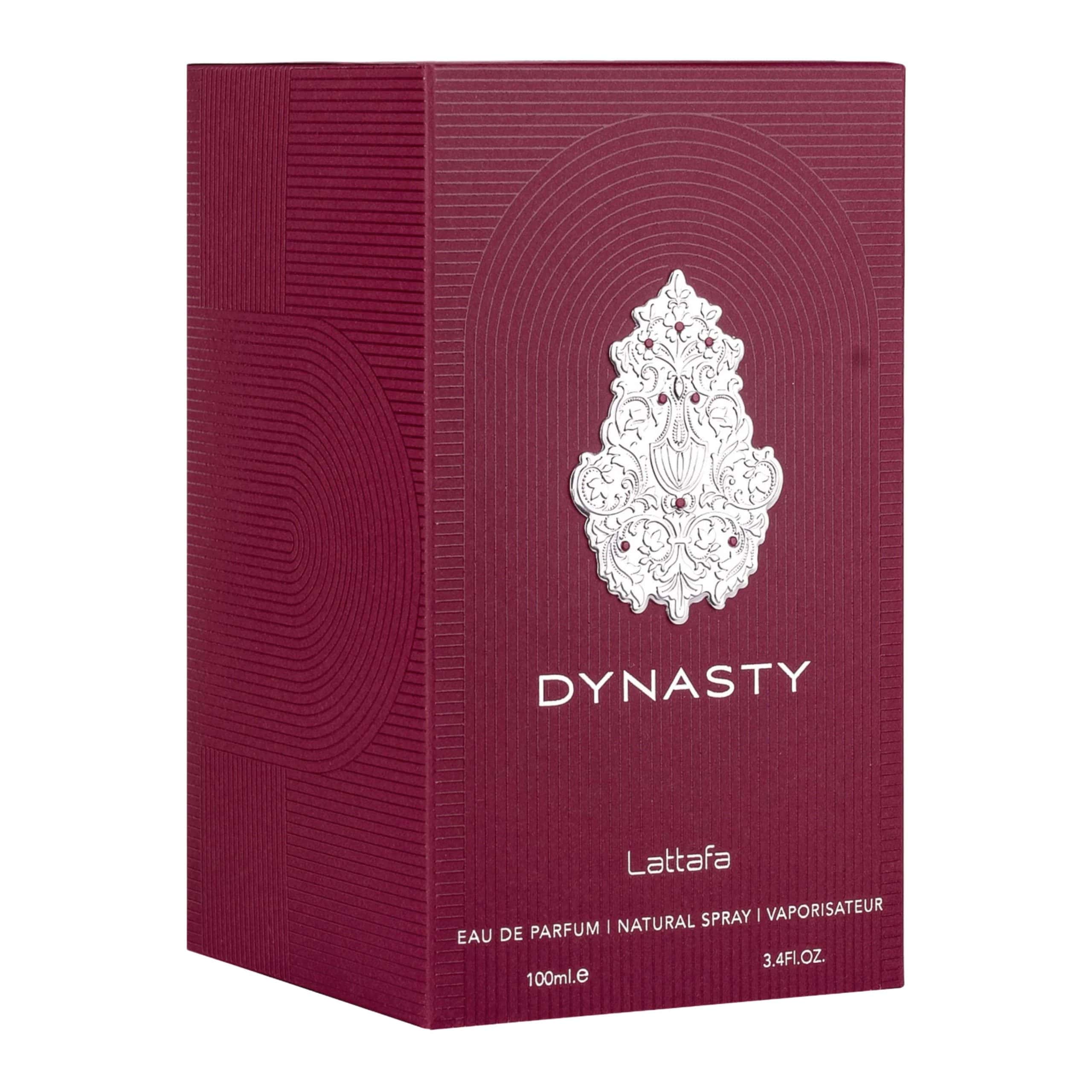 Lattafa Dynasty, kadınlar ve erkekler için odunsu ve baharatlı bir parfümdür. Bu yeni koku 2025 yılında piyasaya sürülmüştür. Parfümör Alex Lee tarafından tasarlanmıştır.