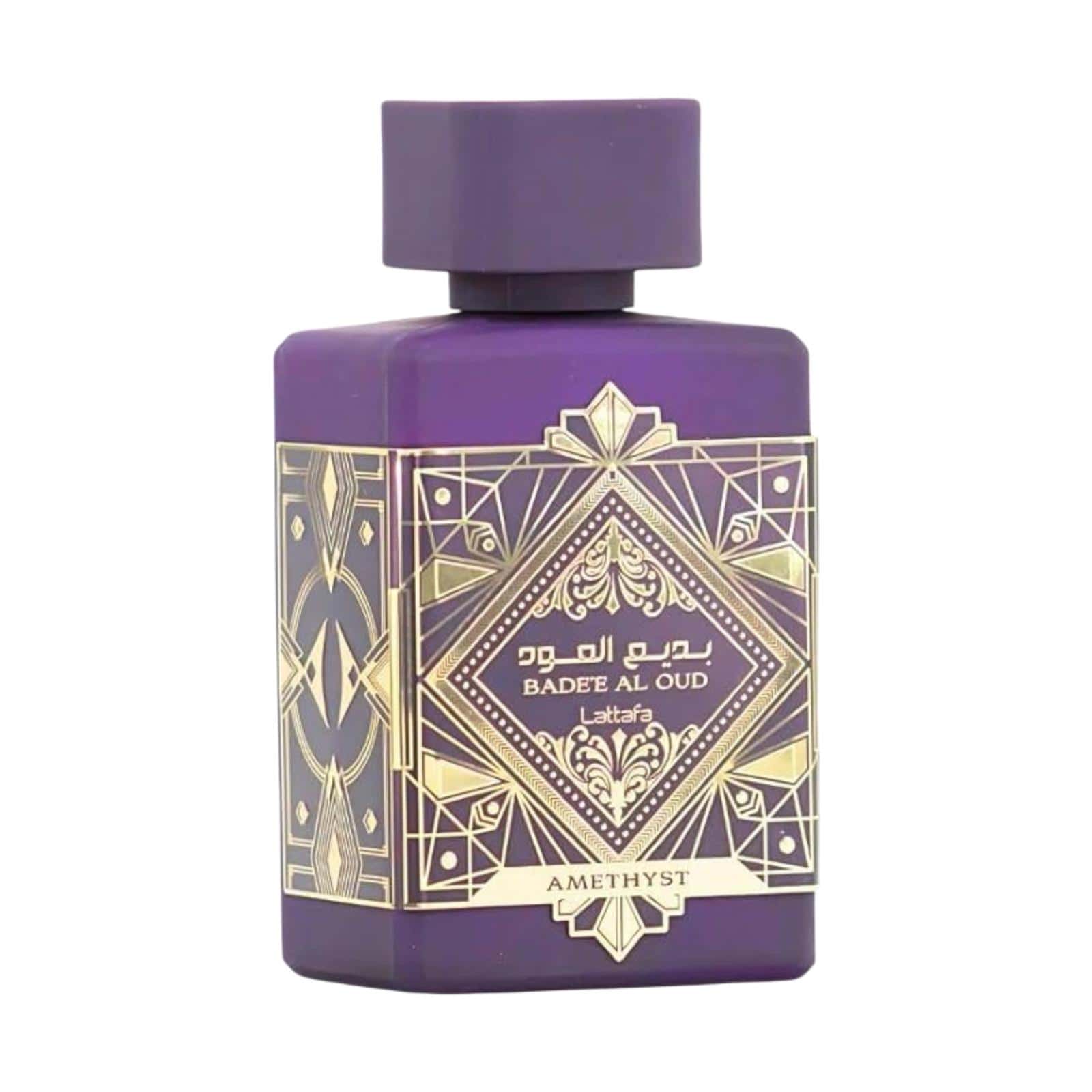 Badee al oud amethyst parfüm 100ml lattafa’dan kadınlar ve erkekler için uzun süre kalıcı oryantal eau de parfum güçlü bir kokuya sahip lüks bir oud kokusu Üst notalar: bergamot, pembe biber, siyah frenk üzümü kalp: şakayık, karamel, agarwood temel: ahududu, paçuli, kuru kehribar